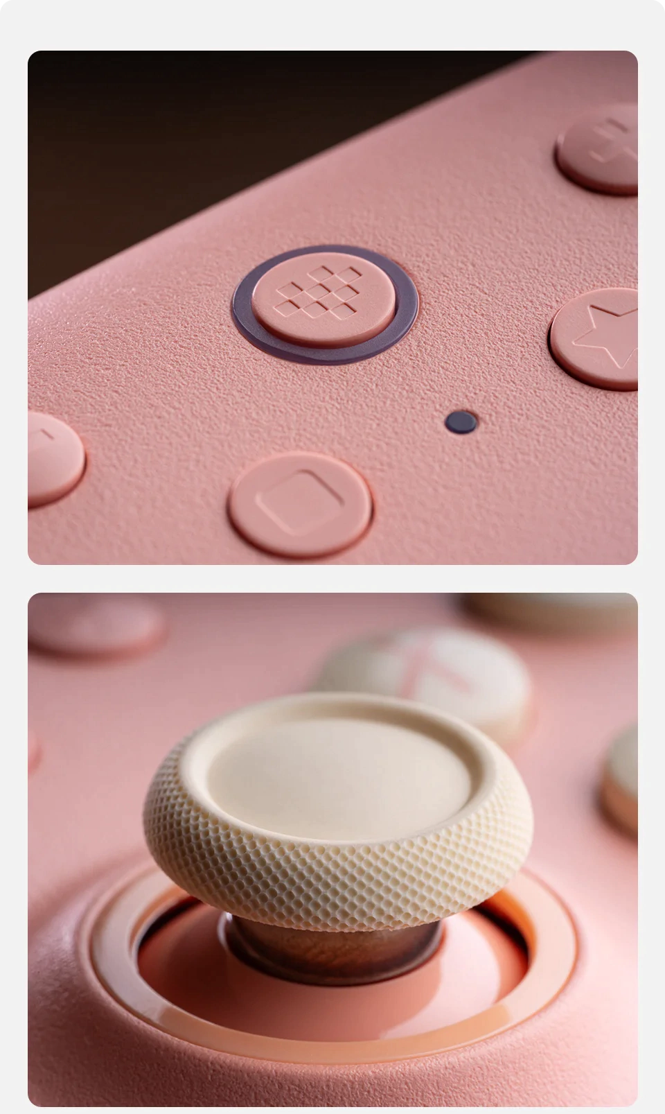 Botões ABXY de membrana e D-pad tátil – respostas rápidas e confiáveis